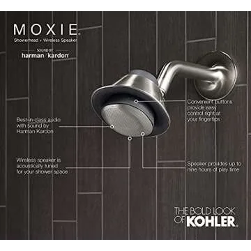 Show moreIntroducing the MOXIE® 2.5GPM SHOWERHEAD equipped with advanced Bluetooth technology, designed to deliver a seamless showering experience like no other. Imagine enjoying your favorite playlists or podcasts while washing away the stresses of the day, all without needing to reach for your phone or portable speaker. With a sleek, modern design and the exceptional sound quality provided by Harman Kardon, you'll feel as if you’re at a concert in your own bathroom. This showerhead not only refreshes you with a generous water flow of 2.5 gallons per minute but also transforms your daily routine into a luxurious escape. The thoughtful engineering ensures easy installation and a perfect fit for any standard shower setup, making this an essential addition to your home.