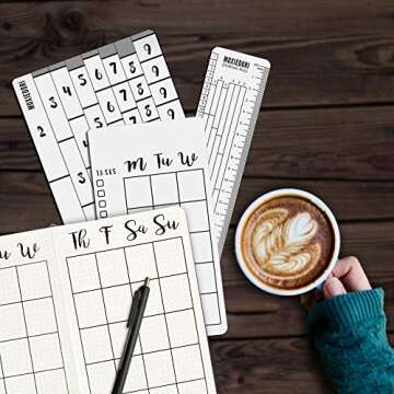 MoxieDori Bullet Journaling Supplies - Bundle of 3: Journal Ruler, Monthly Calendar Tracing Card, and Rows Columns Tracing Card
