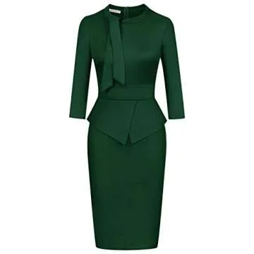 Moyabo Ladies Dresses for Church Tunic High Stretchy Juniors Vintage Dress with Sleeves Green X-Large