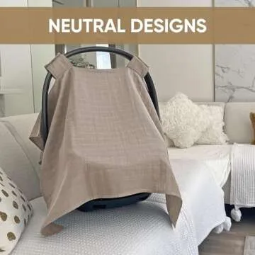 MOZAH Baby Car Seat Cover - Warm Taupe - 100% Organic Muslin - Soft, Breathable and Lightweight, Baby Infant Car Seat Essentials