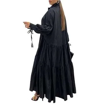 Mozgalz Women Solid Ruffle Maxi Shirt Dress Button Down Long Sleeve Dress Long Sleeve Maxi Dresses Black
