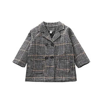 Show more Introducing the MoZiKQin Toddler Baby Boys Girls Wool Coat! This winter, ensure your little one stays snug and stylish with this classic, double-breasted trench coat. Crafted from soft and warm woolen material, this coat offers unparalleled comfort and warmth. Your child will love the fashionable design that combines a cute aesthetic with practical features, making it the perfect outerwear for any chilly day. Available in a classic gray plaid pattern, this coat is a staple for both boys and girls, providing a timeless look that transcends trends.