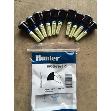 Show moreExperience the power of efficient watering with the MP300090 (10 Pack) Hunter Sprinkler MP Rotator. Designed for homeowners and landscaping professionals alike, these nozzles are engineered to deliver optimal performance and flexibility. Each pack contains ten high-quality sprinkler nozzles that adjust a watering radius of 22 to 30 feet and an arc range of 90 to 210 degrees. This versatility allows for tailored irrigation setups, ensuring that your plants receive the precise amount of water they need without waste. The innovative design features a removable inlet for hassle-free cleaning, maintaining peak performance over time.