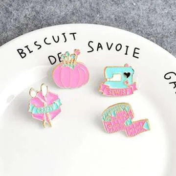 MP35 New Pink Style Sewing-Machine Scissors Neddle Tape Button Brooches Pins in Velvet Bag 4pcs/Set