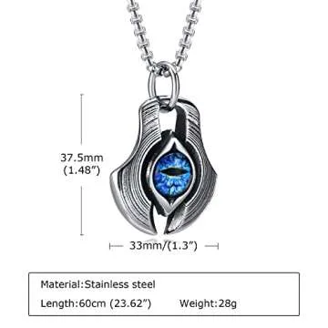 MPRAINBOW Men's Stainless Steel Dragon Necklace Greek Blue Dragon Evil Eye Axe Casting Dog Tag Pendant Amulet Necklace