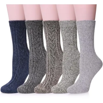 MQELONG Women's Cozy Winter Socks - 5 Pack Soft Cotton Wool Blend