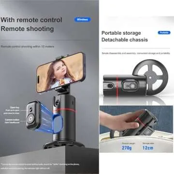 MQOUNY Auto Tracking Phone Holder,360° Rotation Phone Camera Mount Smart Shooting Phone Tracking Holder with Remote Selfie Stick for iPhone Android Stabilizer Shooting Live,No App,Rechargeable