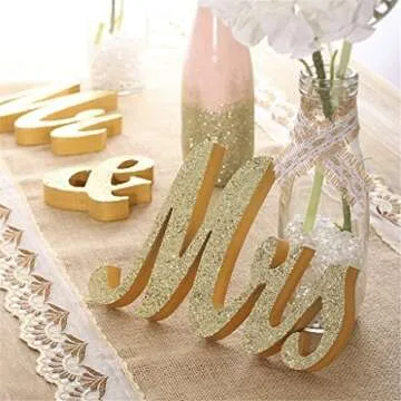 Mr and Mrs Signs Wedding Table Decorations, Wooden Freestanding Letters for Photo Props, Rustic Decoration, Anniversary Shower Gift (Golden)