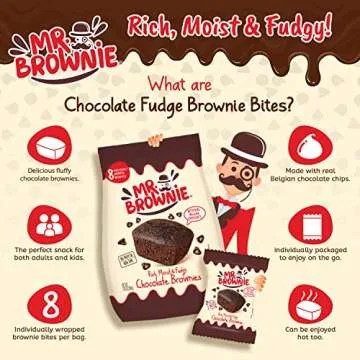 Mr. Brownie Chocolate Brownies | 8 Individually Wrapped Brownie Bites | Snack Packs for Kids & Adults | Real Belgian Chocolate