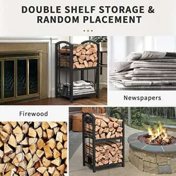 Mr IRONSTONE Firewood Rack with Fireplace Tools Set, Fireplace Tool Rack for Indoor Outdoor Fire Log Holder Wrought Iron Large Wood Stove with Firepit Tools, Brush, Shovel, Poker, Tongs, Black