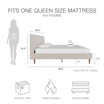 Mr. Kate Daphne Upholstered Bed with Vertical Channel Tufted Headboard, Queen, Ivory Velvet