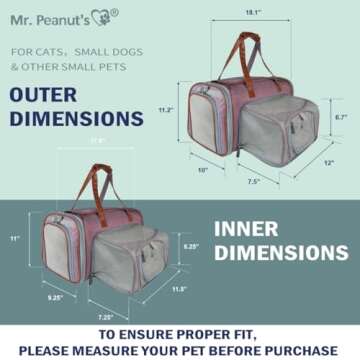 Mr. Peanut's Expandable Airline Approved Soft Sided Pet Carrier, Low Profile Gold Series Tote, Premium Brand Self Locking Zippers, Plush Faux Fleece Bedding with a Sturdy Plywood Base