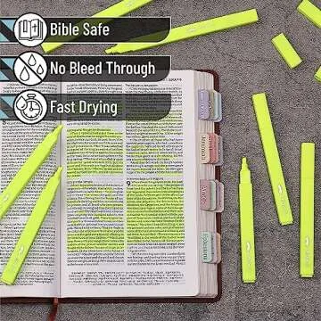 Crafted for ultimate comfort, the ergonomic design fits snugly in your hand, allowing for extended use without fatigue. The innovative chisel tip provides versatility, enabling you to produce both wide and narrow lines effortlessly – perfect for everything from marking important scriptures to annotating your latest literary finds. These highlighters are not just tools, but a means to transform your study habits and make any reading experience more enjoyable.