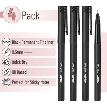 Mr. Pen- Black Fineliner Pens, 4 Pack, 0.5mm Fine Point Pens,Marker Pen for Transparent Sticky Notes, Fine Tip Markers, Fine Line Markers, Drawing Pen, Art Pens, Writing Pens