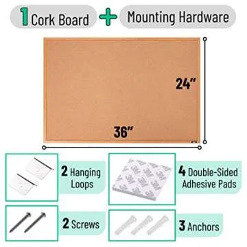 Mr. Pen- Cork Board, 24”x36”, Framed Cork Board, Push Pin Board for Walls with Frame, Office Cork Board, Bulliten Board, Corkboards for Wall