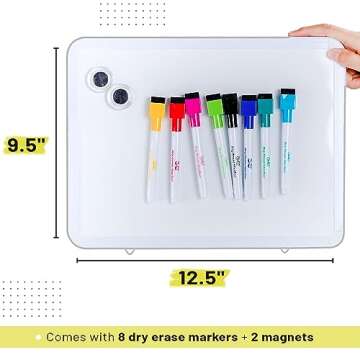Mr. Pen- Dry Erase Board, 12.5" x 9.5" with 8 Dry Erase Markers and 2 Board Magnets, Small Whiteboard, Mini White Board, White Board Dry Erase, Small Magnetic Board, Magnetic White Board