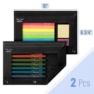 Each pouch features a clear PVC top, allowing for quick visibility of contents while maintaining a sleek, streamlined design. You can easily store pens, colored pencils, or other stationery items while keeping everything neatly organized. The addition of a 3-ring binder allows you to integrate these pouches into any standard binder system, making them an excellent choice for teachers, students, and office workers alike.