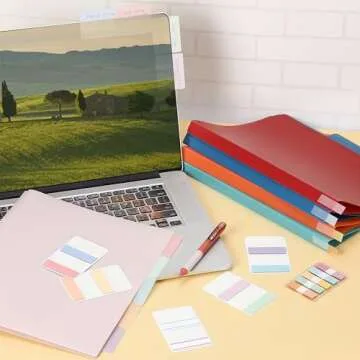 Show more Introducing the ultimate organization tool for students, professionals, and anyone looking to keep their documents in order - the Mr. Pen Sticky Index Tabs. With a remarkable package that includes 500 pieces of sticky tabs in 21 sets, this versatile collection also features 400 pieces of 2-inch tabs in 20 sets available in 10 different vibrant colors, along with 100 pieces of 0.5-inch tabs in 1 set with 20 pieces of each color. Made from top-quality BOPP material, these self-adhesive binder tabs are designed to be waterproof, non-toxic, and odorless, offering you the perfect medium for smooth writing.