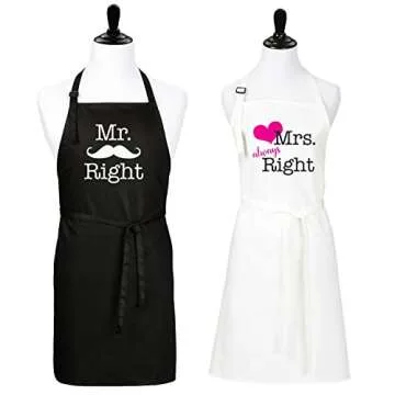 Mr. Right & Mrs. Always Right Aprons | Perfect Wedding Engagement Gift for Couples