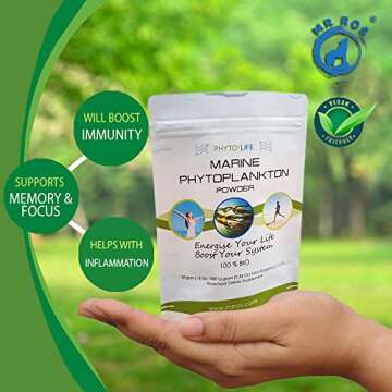 Show more Introducing the Mr Ros Marine Phytoplankton Supplement Powder, a powerhouse of nutrition in a convenient 2.12 oz package! This vegan superfood is specifically designed to elevate your health by offering a rich nutrient profile that your body craves. With its unique blend of Nannochloropsis powder, this supplement is packed with essential vitamins, minerals, amino acids, and omega-3 fatty acids, including both eicosapentaenoic acid (EPA) and docosahexaenoic acid (DHA), which are crucial for heart health and brain function. But that's not all! Users rave about the noticeable boost in energy and vitality they experience, making it a perfect addition to any health-conscious regime.