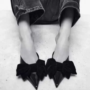MRKEWUNEY Fashion Bow Heeled Mules for Women Slip On Mules Backless Kitten Heel Pointed Toe Wedding Party Dress Sandals Slide Sandals Evening Party Shoes Black Szie 41