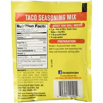 Mrs Dash Salt Free Taco Seasoning Mix (1.25 oz Packets) 4 Pack