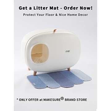 MS!MAKE SURE Cat Litter Box (with Litter Mat), Enclosed Design, Large Space Litter Box with Lid, Prevent Sand Leakage and Isolate Odors, Easy to Clean, with Cat Litter Scoop - White