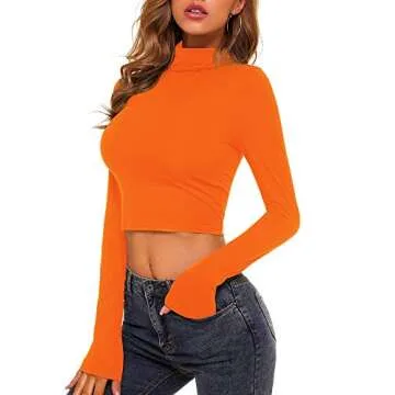 When it comes to crop tops, the MSBASIC Orange Cute Crop Top stands out among competitors due to its unique blend of comfort and style. Unlike many generic brands that offer basic designs, our cropped turtleneck features a chic silhouette that flatters various body types. Plus, its breathable fabric is an upgrade over typical polyester blends, providing better airflow and comfort throughout the day. While other tops may leave you feeling restricted, the stretchable nature of this shirt ensures maximum mobility, making it an unbeatable choice for those who don't want to sacrifice style for comfort.