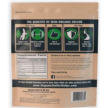 Each scoop packs a powerful punch of nutrients without any fillers or artificial additives, making it a choice you can trust. Whether you're an athlete looking to recover faster, an individual with joint discomfort seeking relief, or someone aiming for healthier skin and hair, these organic sulfur crystals will make a meaningful impact on your wellness journey.