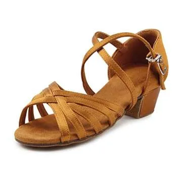 MSMAX Toddler Girls Latin Dancing Shoes Low Heel Kids Salsa Ballroom Dance Shoes for Girls Brown 13.5 M US Little Kid
