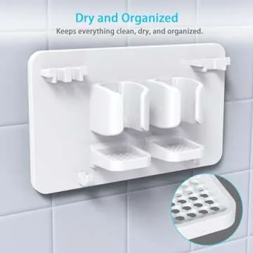 Mspan Toothbrush Razor Holder for Shower: Wall Mounted Tooth Brush Organizer - Self Adhesive Hanging Mount for Bathroom Toothpaste Shaver Loofah & Electric Toothbrush