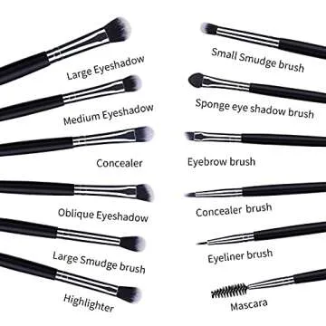 MSQ Eye Makeup Brushes Set - 12pcs with Soft Bristles & Longer Handle