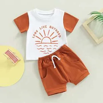 Mstrrouning Newborn Infant Baby Boy Shorts Set Crewneck Pull on T-Shirt Top Elastic Waist Solid Shorts 2Pcs Summer Outfits