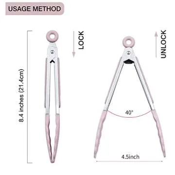 With heat resistance up to 480°F, you can confidently use these tongs in high-temperature cooking without fear of damage. The locking system allows for easy storage; just pull the tab to lock and push to unlock, making it a breeze to use and store these tongs anywhere in your kitchen.