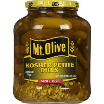Show moreDiscover the incredible flavor of Mt. Olive Petite Dills Kosher Pickles—a delightful choice for every pickle enthusiast. Packaged in a generous 46oz jar, these petite dills are not only perfect for snacking but also make an exceptional addition to your culinary creations. Infused with a harmonious blend of onions and garlic, each pickle bursts with freshness and zest, making them an irresistible treat. Whether you’re enjoying them straight from the jar or incorporating them into your favorite sandwich or charcuterie board, you’ll appreciate their crisp texture and vibrant flavor profile.