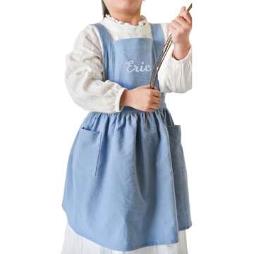 MT WORLD Girls Apron Personalized Linen Kids Aprons Durable Toddler CrossBack Pinafore Gifts for Cooking Baking Crafting
