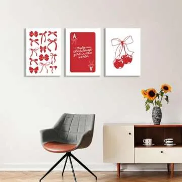 MTFBWY Coquette Bow Canvas Wall Art Red Cherry Poster Prints Preppy Aesthetic Printing Trendy College Room Decor Pictures for Girly Bedroom Apartment Dorm Set of 3 12x16in Wrapped Canvas