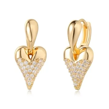 Show moreIntroducing the dazzling MTMY 14K Gold Plated Cubic Zirconia Dainty Simple Elegant Heart CZ Hoop Earrings, an exquisite addition to any woman's jewelry collection. Crafted using an excellent polishing process, these earrings provide long-lasting color retention, ensuring you shine effortlessly for every occasion. Their heart-shaped pendant design exudes elegance and charm, making them the perfect accessory to enhance any outfit. Whether dressing casually for brunch or preparing for a more formal event, you will find these earrings seamlessly elevate your style.