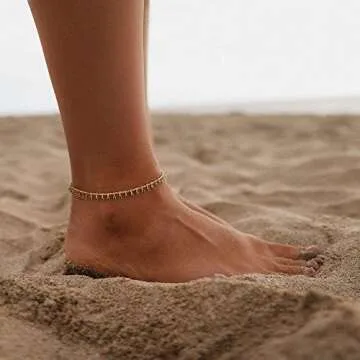 MTMY Gold Anklets for Women 14K Gold Plated Tiny Bead Anklet Green Cubic Zirconia Tassel Foot Chain Dainty Adjustable Cute Anklets Summer Beach Boho Anklets Jewelry Gift for women (nano-green)