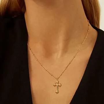 MTMY Gold Cross Necklace 14K Gold Plated Dainty Gold Cross Pendant Necklace for Women Delicate Necklace Jewelry (cross 7)