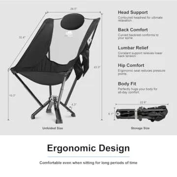 MTRVR Folding High Back Camp Chair with Headrest Pillow, Widened Aluminum Frame Support 600 LBS, Oversized Portable Outdoor Lounge Patio Chair Mesh Back for Camping, Beach, Poolside, Backyard, Garden
