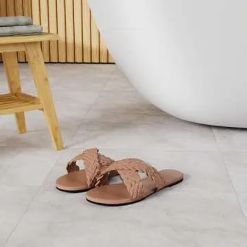 Mtzyoa Women Crossover Sandals Flat Braided Nude Slides Leather Comfort Size 8 Handmade Weave Dressy Wedding Summer