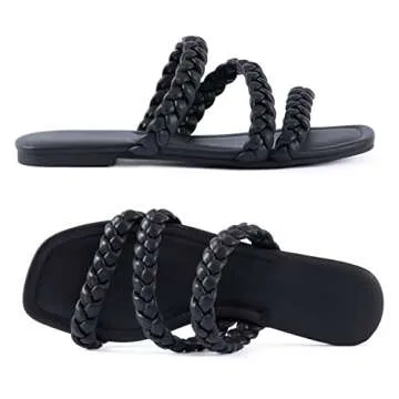 Show moreStep out in style this summer with the **Mtzyoa Women Flat Sandals** in a chic braided strap design. Crafted from high-quality leather, these elegant slide sandals feature summery braided straps that sit beautifully at the vamp, accentuating the foot with a touch of sleek sophistication. The modern square toe adds a fashionable edge to your warm-weather wardrobe, allowing you to make a bold statement with ease. Designed for women who value both style and comfort, these sandals ensure each step feels like walking on clouds, thanks to their memory foam cushioning that provides ultimate support.