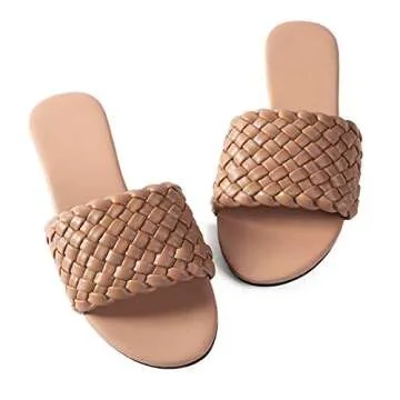 Mtzyoa Women Flat Sandals Woven Crossover Leather Summer Slip on Open toe Slingback Flip Flops Nude 8