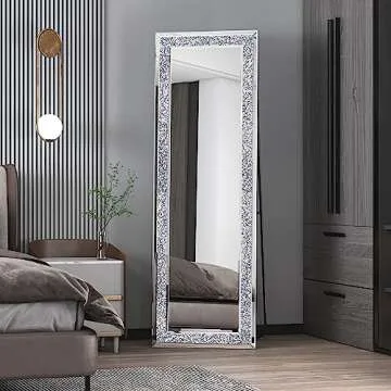 MUAUSU Crystal Full Length Floor Mirror- 59"×18" Crushed Diamond Full Body Mirror Silver Long Standing Mirror for Bedroom Living Room Bathroom Wall Mounted