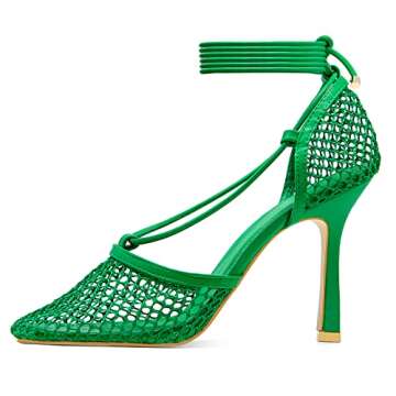 MUCCCUTE Square Toe Mesh Stiletto Heels for Women, Sexy Wrap Around Lace Up High-Heel Sandals Green 3.95IN