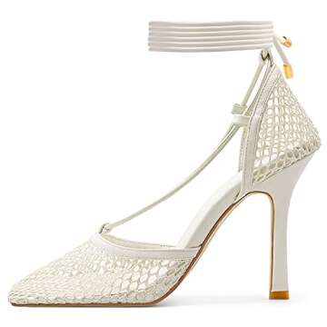 Show moreIntroducing the MUCCCUTE Square Toe Mesh Stiletto Heels—the ultimate statement shoes designed for the modern woman who loves to make an impression. With a striking 3.95" stiletto heel, these sandals combine sophistication and comfort with their high-quality synthetic upper, breathable lining, and durable outsole. The innovative wrap-around lace-up ankle strap not only secures your feet but also adds a chic touch to your ensemble. The widely stretchable mesh upper envelops your feet snugly while enhancing breathability, ensuring you can dance the night away without discomfort.