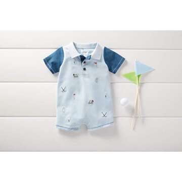 Mud Pie Baby Boys' Golf Pique SCHIFFLY Romper, Blue, 9-12 Months