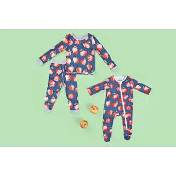 Show morePrepare your little one for a delightful night’s sleep with the charming Mud Pie's Apple Pajama Set. Designed with kids in mind, this exquisite two-piece pajama set features a long sleeve top paired with cozy long bottoms, ensuring they'll stay snug and warm through the night. The enchanting navy background sets the stage for an eye-catching all-over print of vibrant red apples, bringing a splash of fun and excitement to bedtime. Adorned with stylish gray accents on the hems, this pajama set is as fashionable as it is functional.