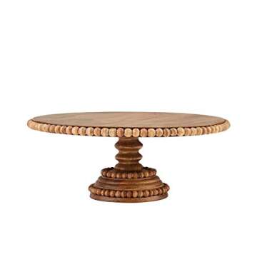 The beautiful beaded rim is an artisan detail that catches the eye, perfectly complementing the natural wood grain. Whether you are displaying a decadent wedding cake or a simple pie, the Mud Pie Beaded Cake Stand ensures that your desserts become the focal point of your table. Its solid pedestal design not only adds stability but also contributes to a stylish and functional base that maintains the beauty of the presentation. You're encouraged to delight guests by serving desserts in style!
